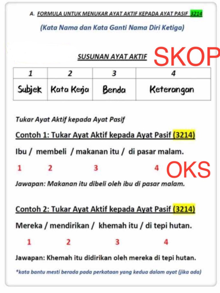 Formula Untuk Tukar Ayat Aktif Kepada Ayat Pasif A 3214 B 3124 Ayat Aktif Ayat Pasif Cikgugoh