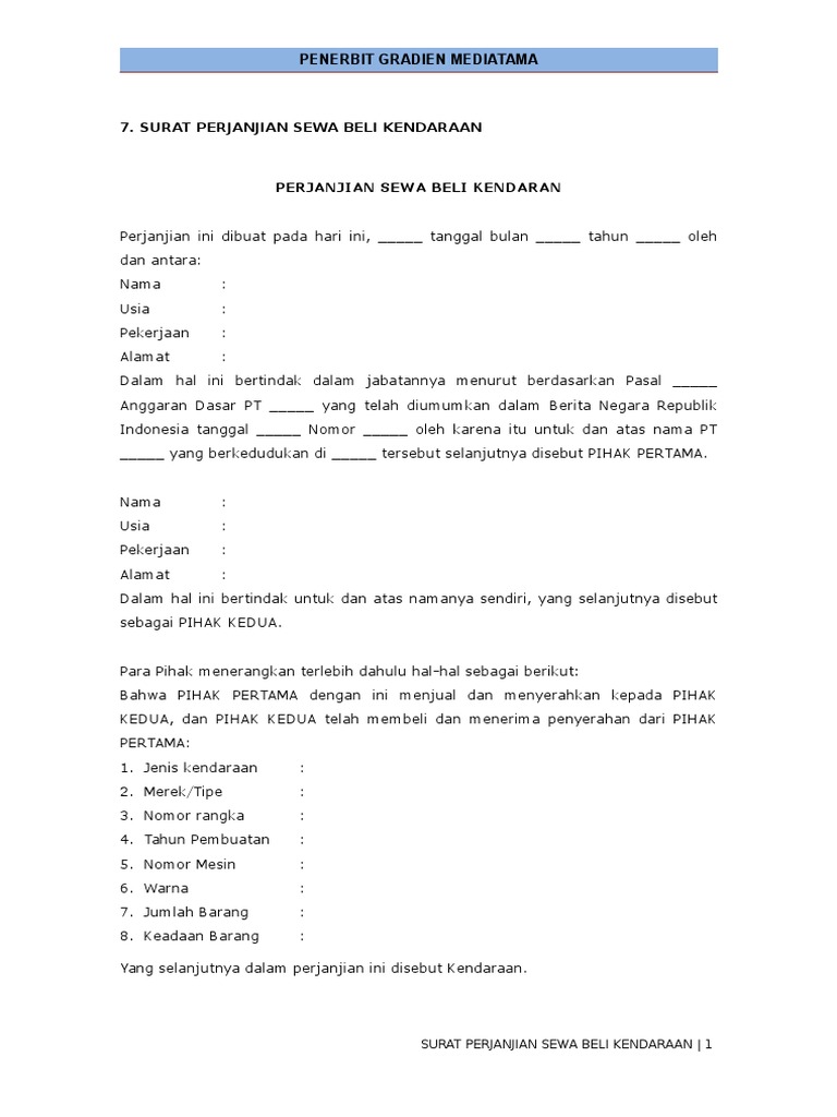 Apa Yang Perlu Ada Dalam Contoh Perjanjian Sewa Rumah Yang Lengkap. Saran dalam penulisan ini adalah sewa beli dalam masyarakat Indonesia lebih baik diatur dalam suatu undang-undang karena dengan adanya undang-undang sewa bell maka terdapat. Sesuai Surat Perjanjian Sewa Beli pasal-4 ayat-1 huruf-a maka Pembeli yang telah membayar lunas sewa belinya akan diserahkan Surat Keputusan tentang Penyerahan Hak Milik Atas Rumah dan Tanahnya.